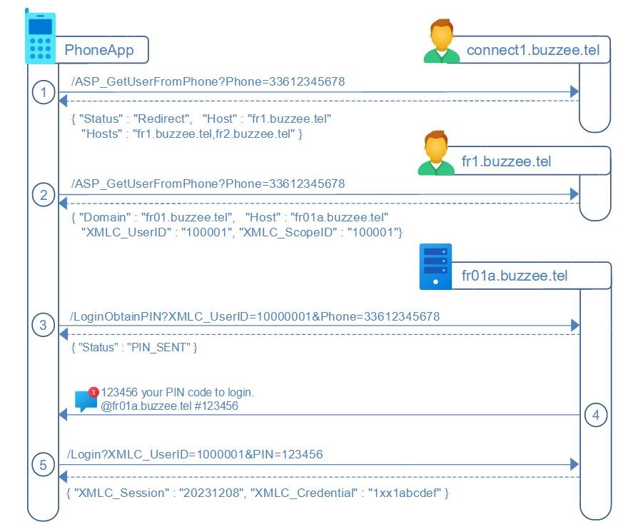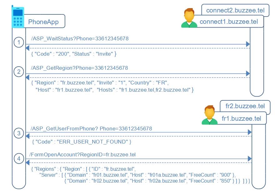2. Retrieve the user on the regional server: /ASP_GetUserFromPhone?Phone=33612345678
